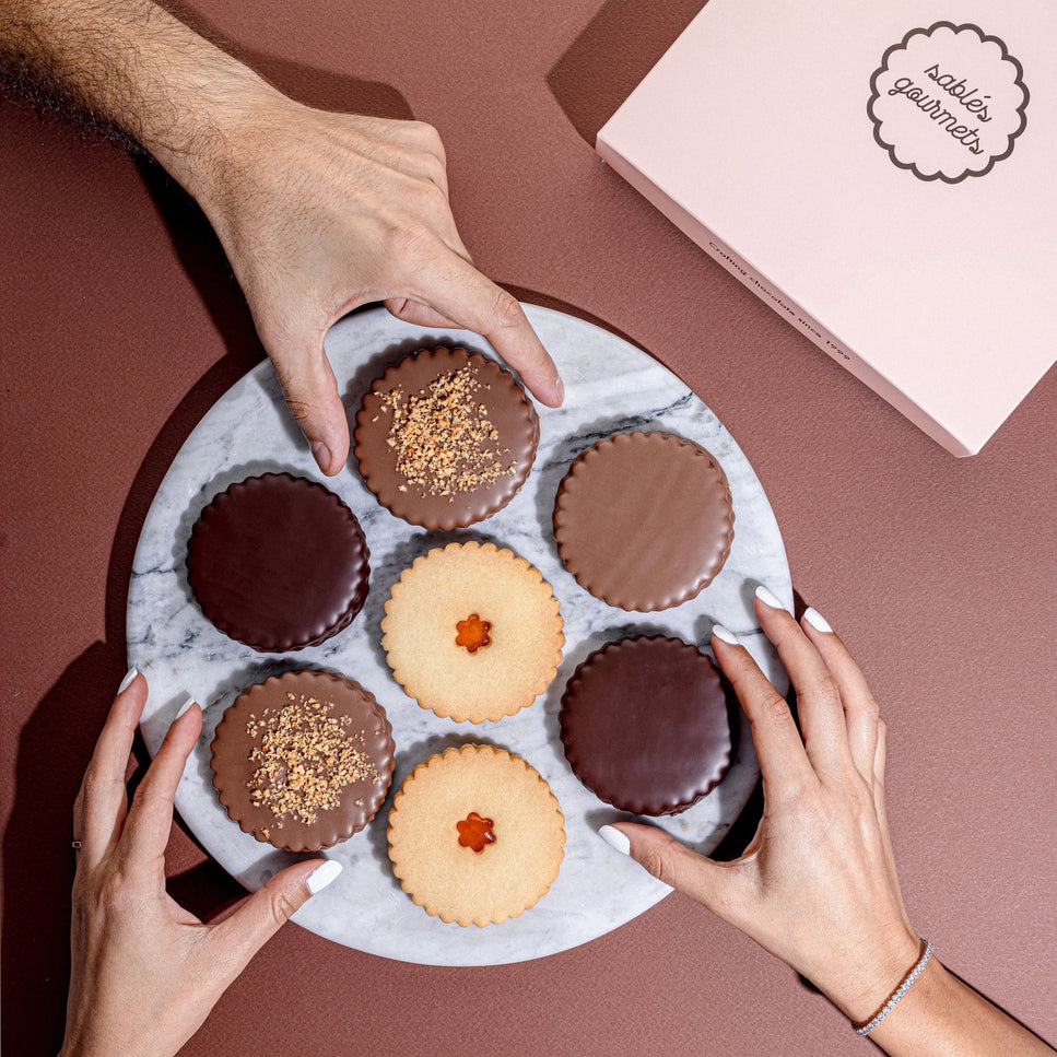 At Sablés Gourmets, every cookie is handmade in small batches with premium butter and carefully sourced nuts, chocolate and citrus. Our recipes honor French sablé tradition—delicate crumb, balanced sweetness and a clean label approach—while our packaging is designed for gifting. From the first mix to the final ribbon, we control each step in-house to guarantee freshness, consistency and a flawless unboxing experience.