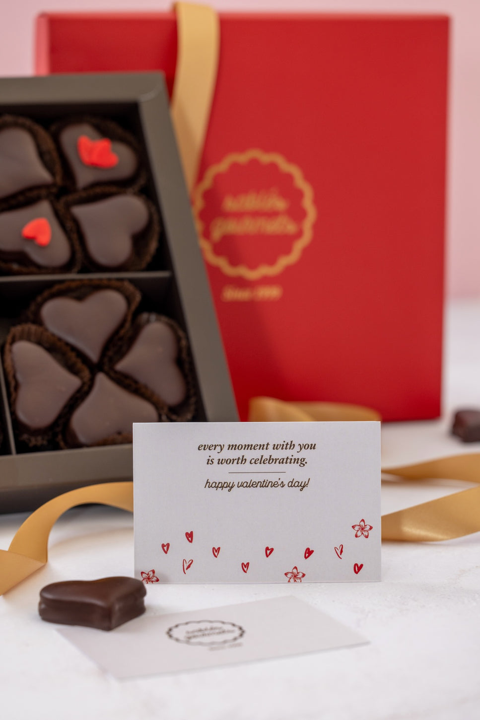 Our Valentine’s Day collection is created for people who want a gift that feels thoughtful: gourmet chocolate, soft cookies and delicate sables, all presented in boxes that say “I care” from the first glance. Whether you’re together or sending from afar, we help you turn chocolate and dessert into a real moment.